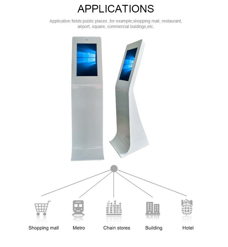 The touch screen kiosk pc can be put in many places like hotel,shopping mall, airport, musenum, super market, cinema...
